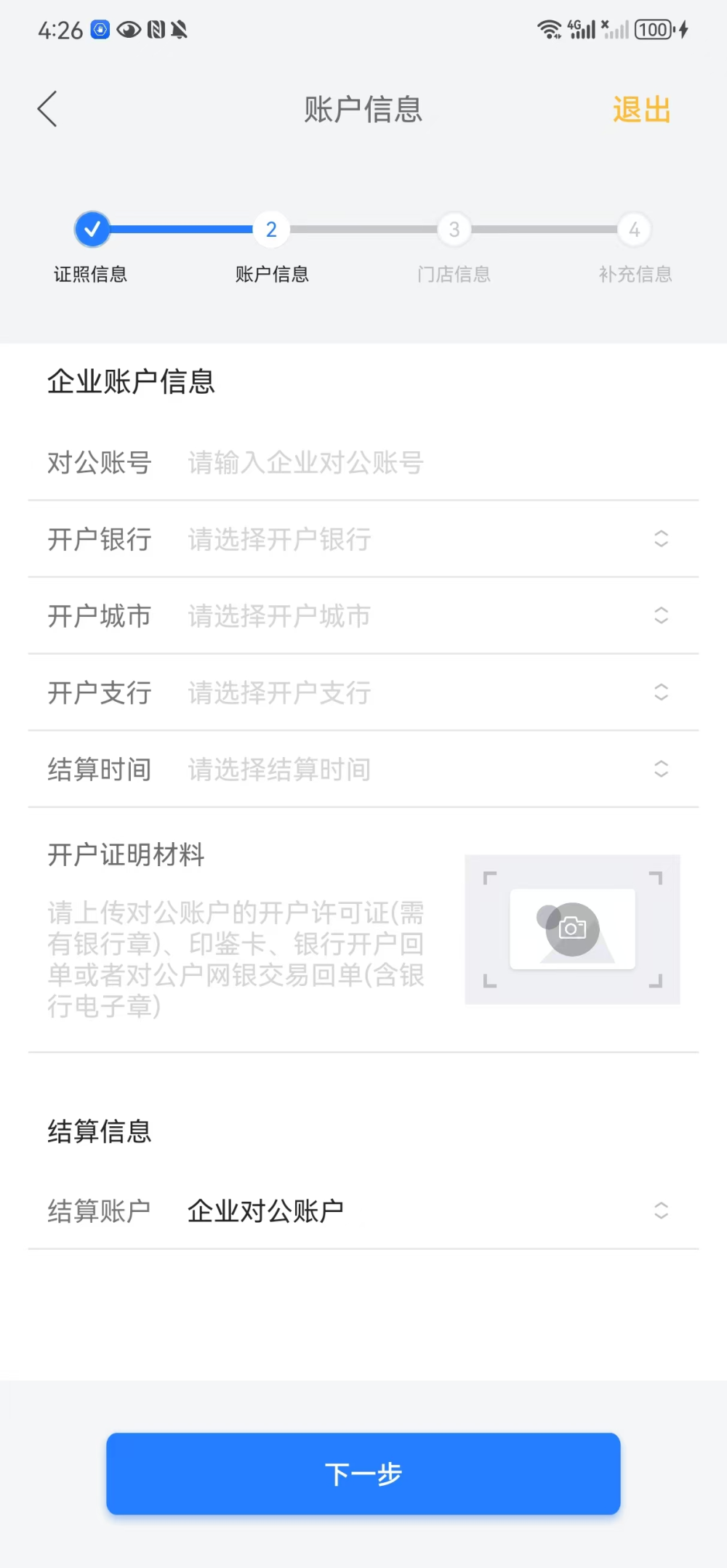 (4)企业需要提供对企业公账户信息,需要包含正确的账户名称、对公户信息以及银行章;