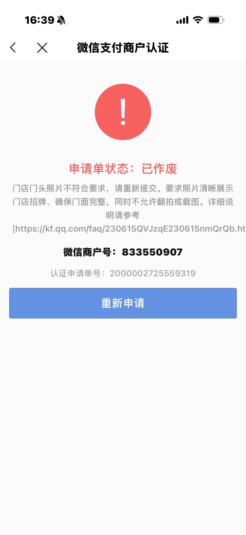 - 商户门头照:经营者与经营场所的门头合影,且门头信息要与商户简称一致。