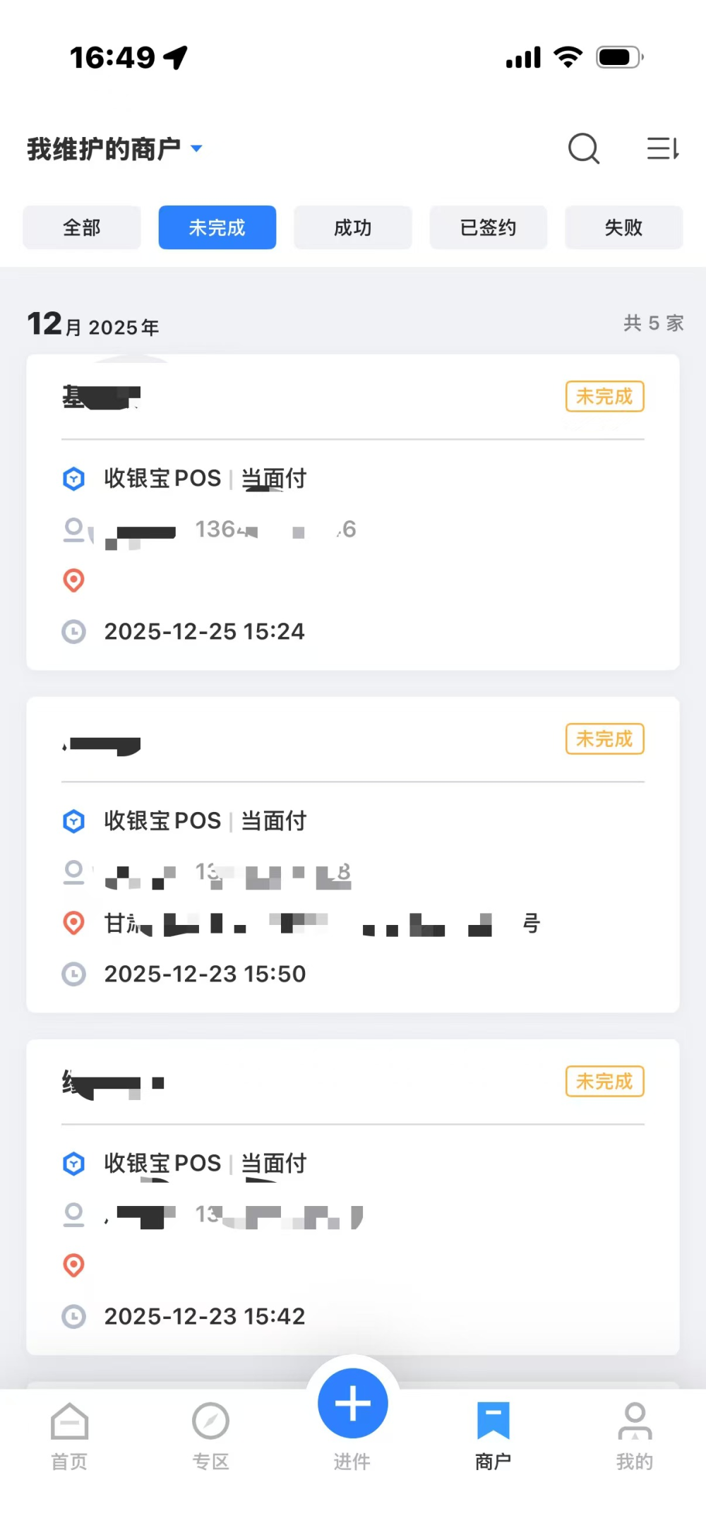 通联小伙伴会对每一步的信息采集进行保存,并支持中途退出功能。中断入网信息提交的商户可以在“商户——未完成”的商户列表中根据商户的基本信息找到。