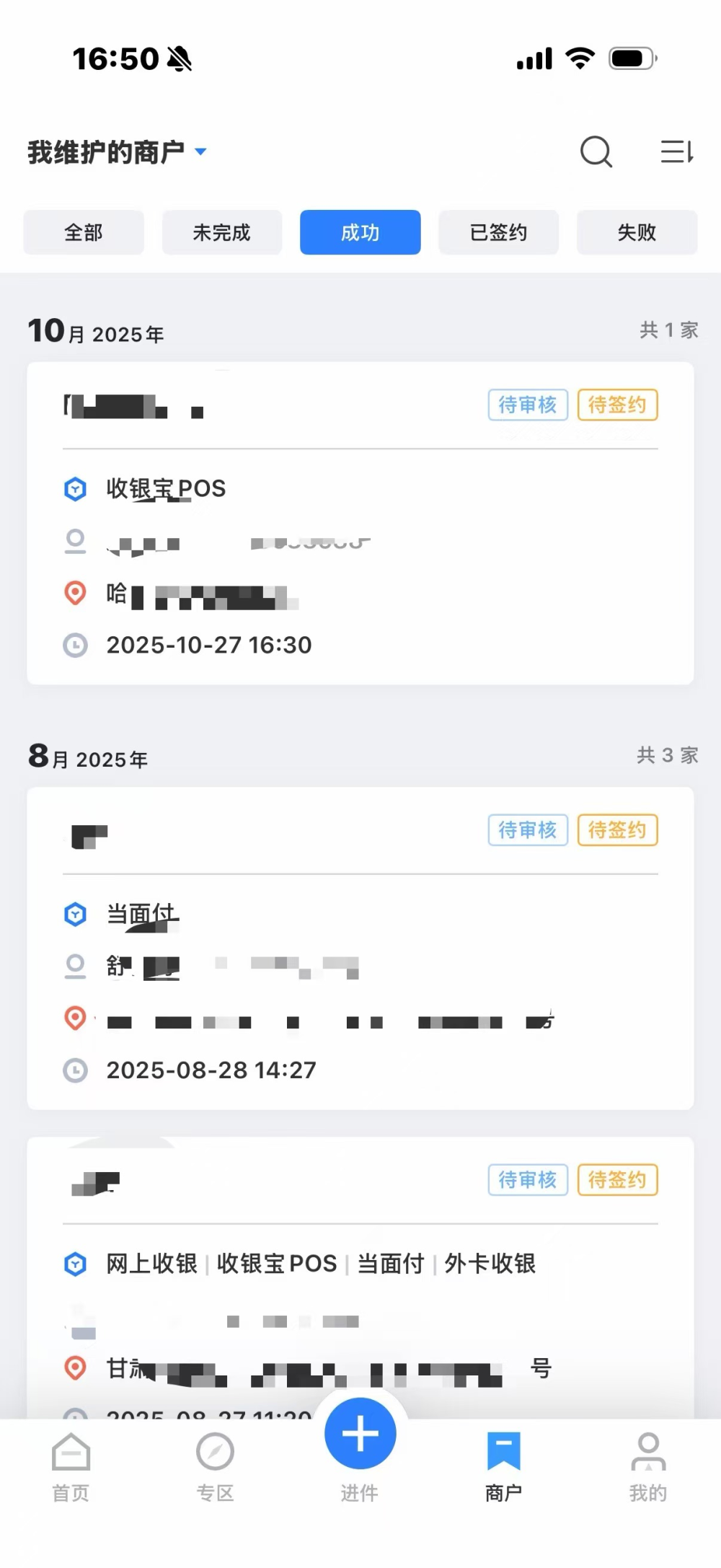 成功——完成商户录入并已成功生成商户号,但未完成签约的商户,其中未完成的签约状态又分为: